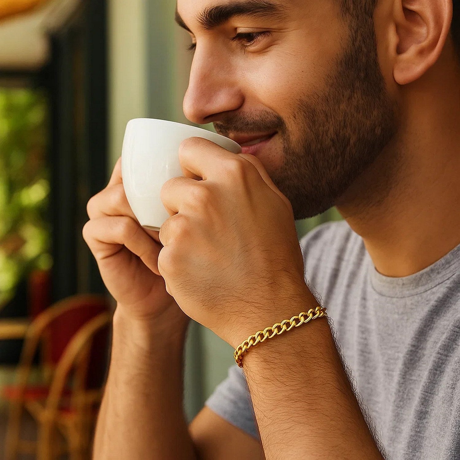 This lite curb bracelet comes in 10k yellow gold and has a width of 6.2 millimeters. Secured with a lobster clasp.