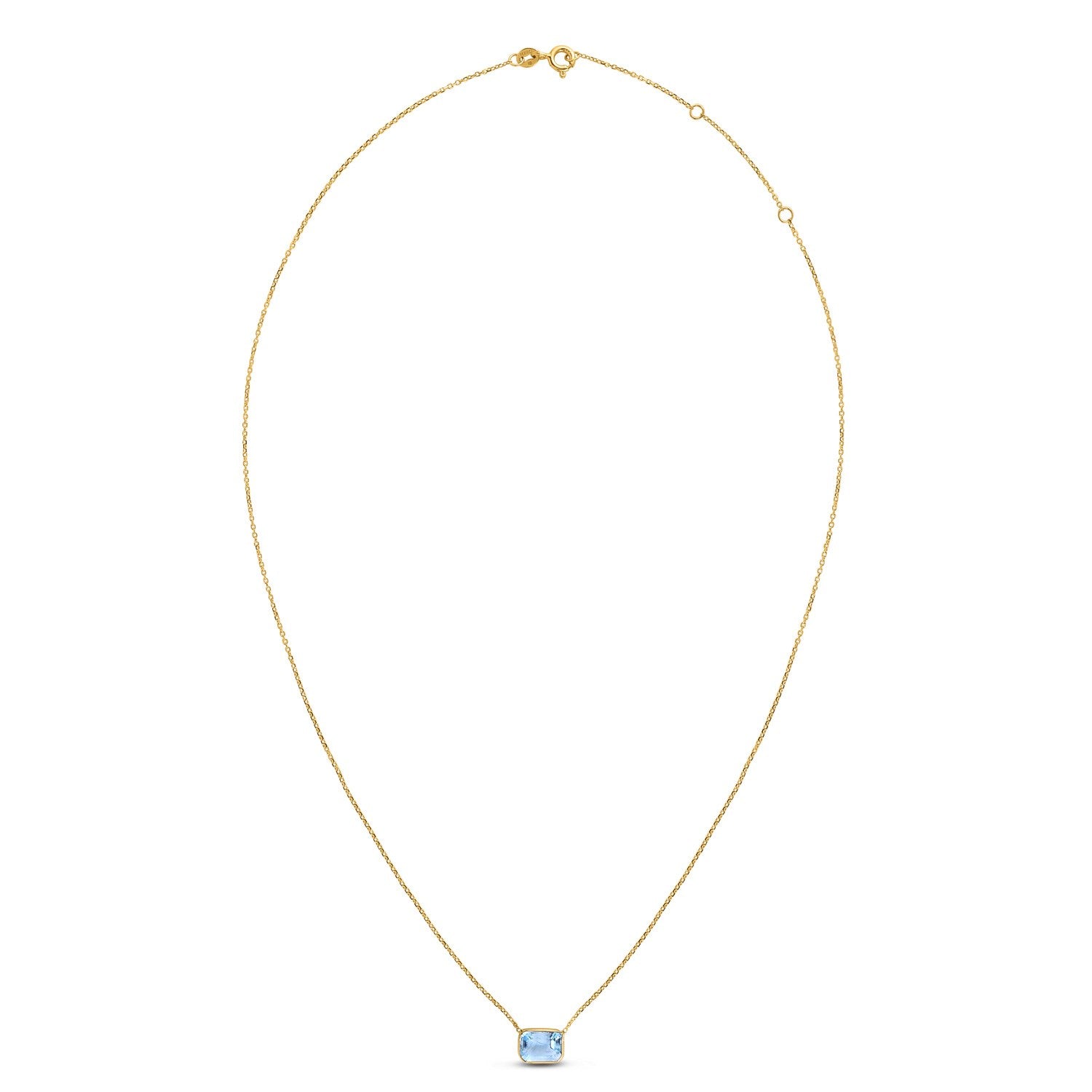 14K Yellow Gold Emerald Cut Blue Topaz Necklace